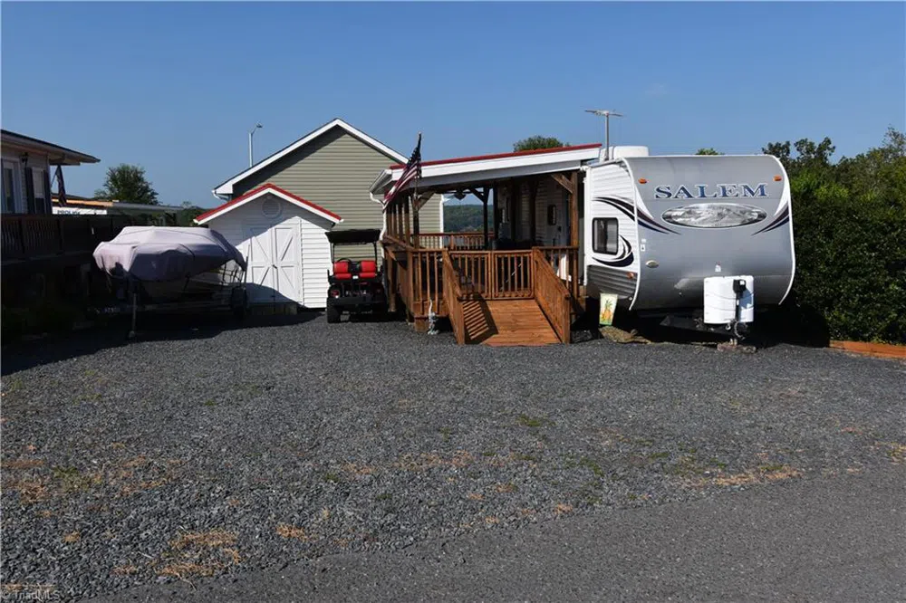 Embrace the ultimate lakeside getaway with this inviting 2-bedroom, 2012 camper, perfectly positioned on a level deeded lot boasting lake views from the back deck. A covered porch beckons you to unwind & relax, while the rear open deck offers an ideal spot to bask in the sun's warmth and revel in the outdoors. The camper's thoughtfully designed interior features a comfortable queen bed in one bedroom and a versatile bunk room in the second Completing this lakeside haven is a practical storage building, catering to all your storage needs, whether for water toys or outdoor gear. The ample space allows for convenient boat parking and multiple vehicles, catering to the desires of lake enthusiasts and adventurers alike. Badin Shores Resort enhances the experience with community amenities making every day feel like a vacation. This property is not just a camper on a lot; it's a ticket to lakeside memories and boundless relaxation within a lakefront resort community.