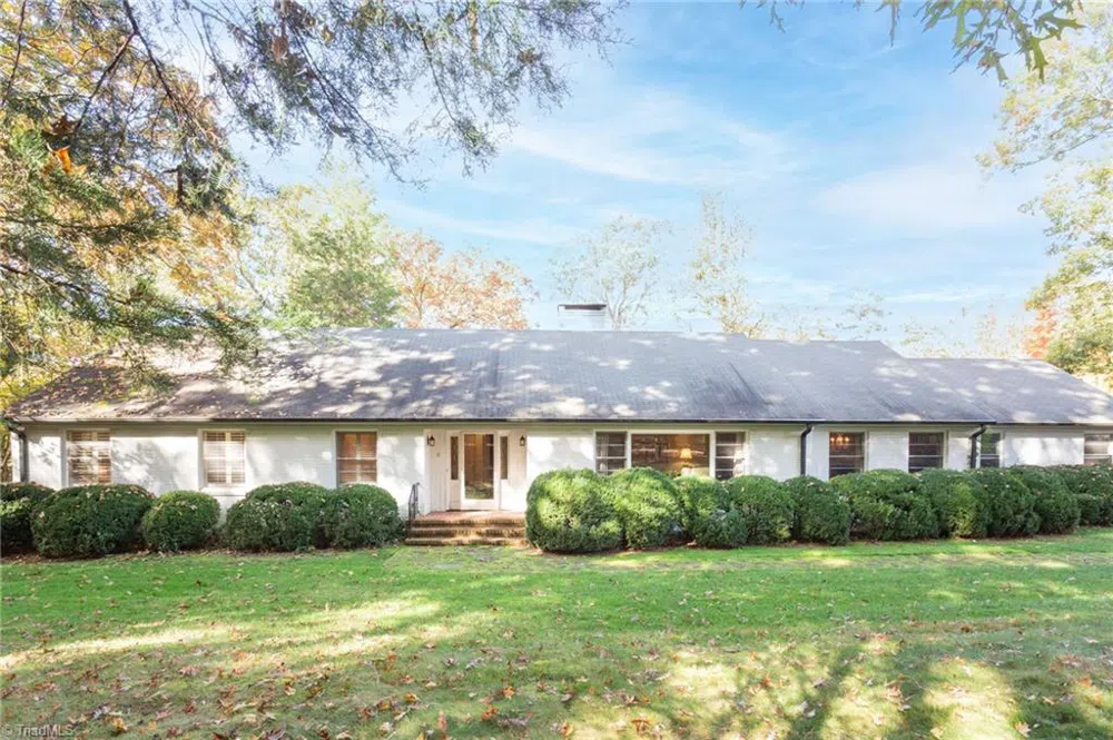 Cozy Ranch with Saltwater Pool on Sedgefield Country Club Golf Course Lot! Discover this charming 1959 ranch-style retreat, nestled on 1.85 private wooded acres within the prestigious Sedgefield Country Club community. This unique property combines vintage warmth with peaceful seclusion, all on a prime golf course lot on the 14th hole. Light wells and smart details were designed and adapted into the original mid century home by famed designer John May. Large bedrooms and comfortable spa like bathrooms make this a serene refuge while the open flow of the house is perfect for entertaining. The saltwater pool is surrounded by landscaped paths and integrated pool deck with space for sunning and dining- all steps from the golf course without compromising privacy.